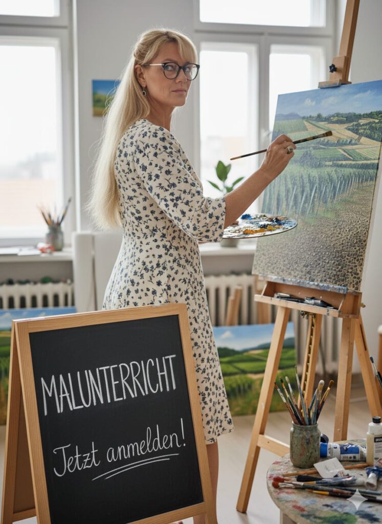 Die Malkurse finden in kleinen, liebevoll betreuten Gruppen direkt im eigenen Atelier statt.